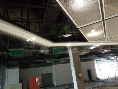 玻璃的安装是一项十分细致、精确的整体工程。施工前要检查每个工位的人员到位,各种机具工具是否齐全正常,安全措施是否可靠。高空作业的工具和零件要有工具包和可靠放置,防止物件坠落伤人或损毁玻璃,待一切检查完毕后方可吊装玻璃。